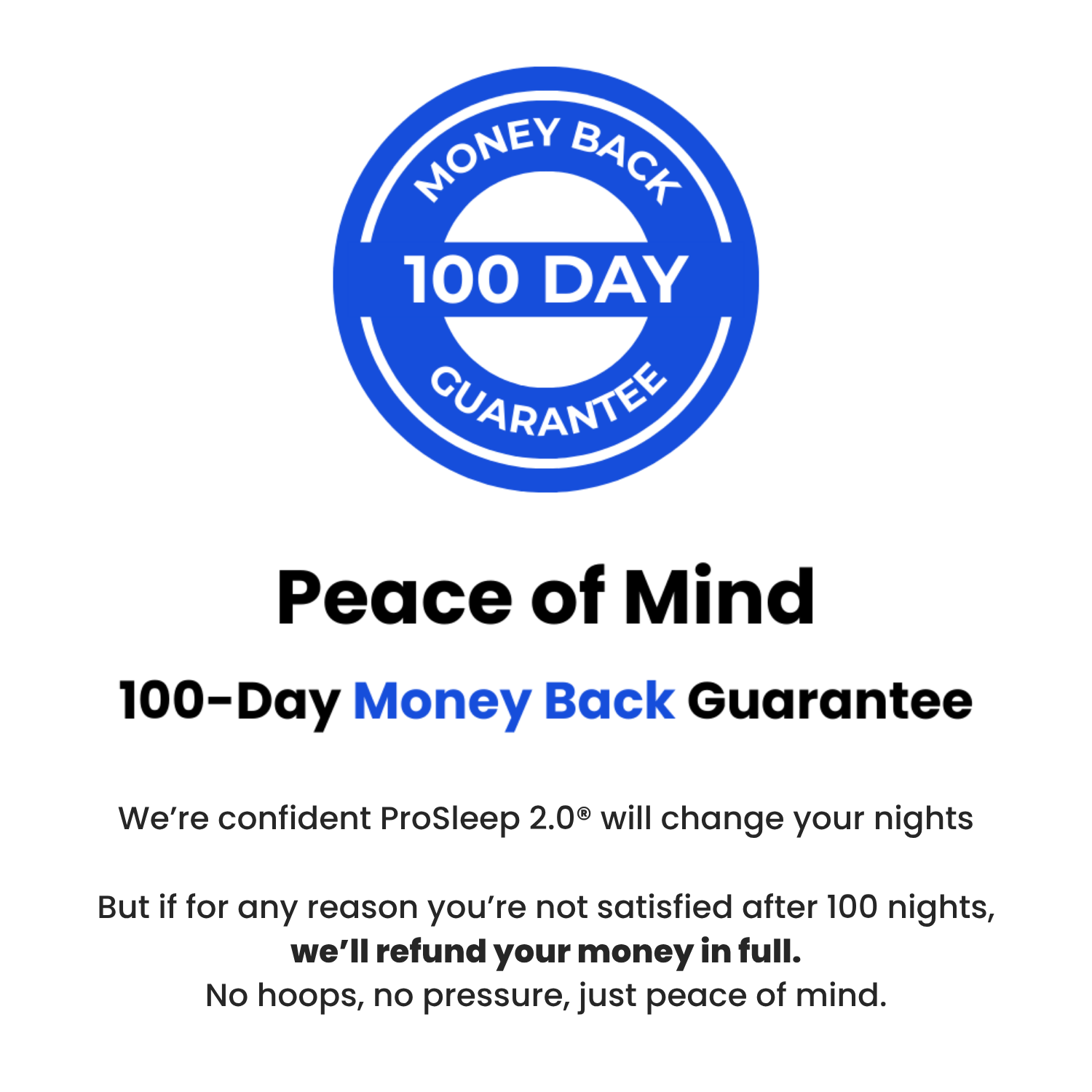 We’re so confident ProSleep 2.0 will transform your sleep that we give you 100 full nights to experience the difference.
