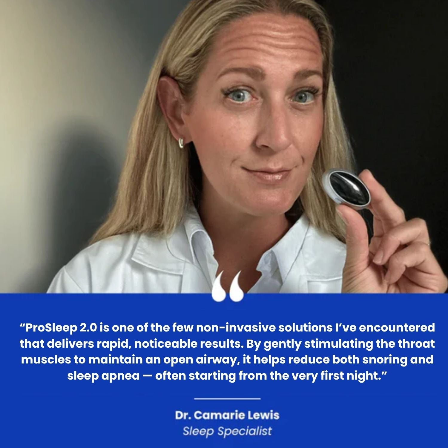 ProSleep 2.0 eliminates snoring and sleep apnea in 99% of users—no mask suffocating you at night, no machine waking your partner, no lifelong dependency.